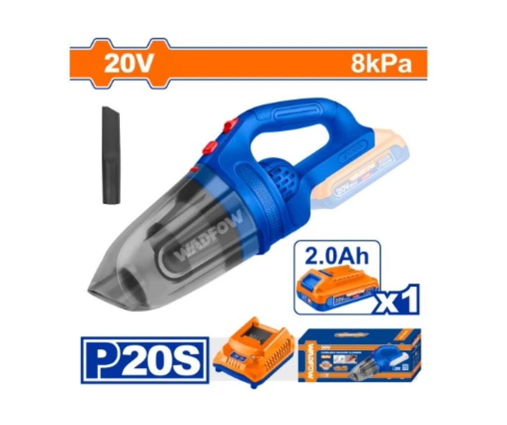 Voltage: 20V Dust capacity: 0.45L Vacuum pressure: ≥8kpa Include: 1 Pcs crevice nozzle 1 Pcs 2Ah battery pack (WLBP520) 1 Pcs charger (WFCP518) Charge volts: 220-240V~50/60Hz Packed by color box