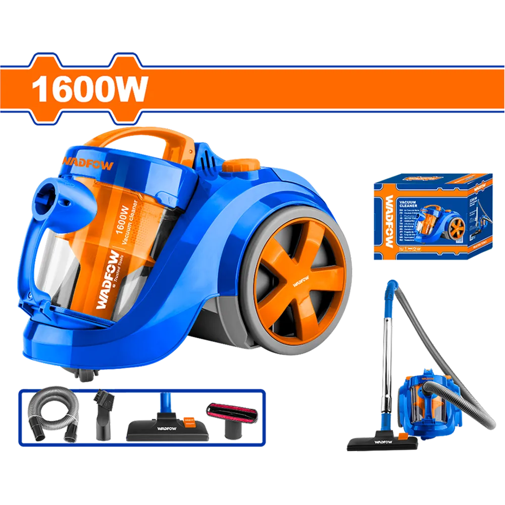 Voltage: 220V-240V~50/60Hz Power: 1600W Capacity: 1.8L With speed control function With Automatic Cable Rewinder HEPA filter Air flow: 2.0~2.3 m³/min Vacuum pressure(KPa):≥20 Kpa With soft start 1.5m flexible hose 1 pcs metal telescope tube 1 pcs wet&dry floor brush 1 pcs small brush Packed by color box
